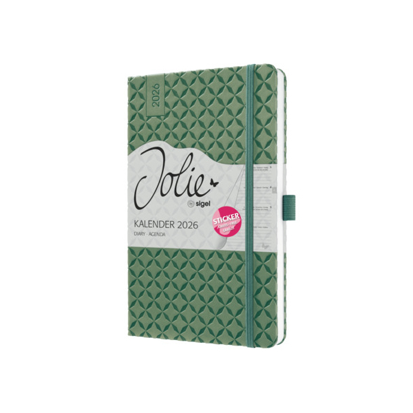 Der stabile Hardcover-Einband in elegantem grün sorgt für Beständigkeit und erleichtert das Schreiben. Mit dem fröhlichen Buchkalender von Jolie haben Sie Ihre Termine, Dates und ToDo's stets im Blick. Ausgestattet mit hilfreichen Features wie einem Gummiband, einer Stiftschlaufe und einem Einsteckfach, bietet er ausreichend Platz für Ihre Notizen und Dokumente.