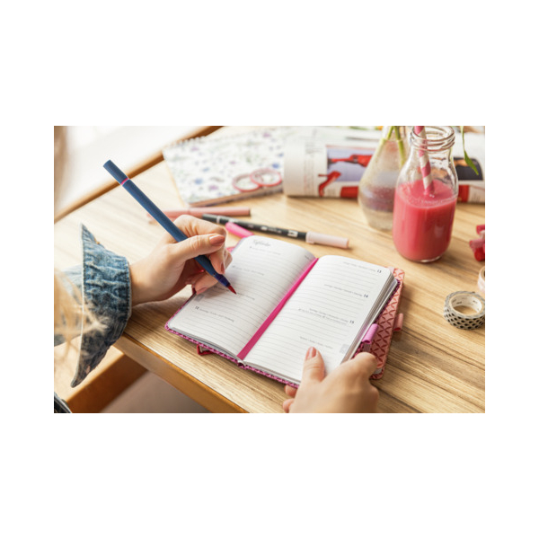 Der stabile Hardcover-Einband sorgt für Langlebigkeit und ermöglicht ein angenehmes Schreiben. Mit insgesamt 174 Seiten, darunter 12 perforierte Blätter zum einfachen Heraustrennen, bietet dieser Kalender genügend Platz für Ihre Termine, Notizen und Ideen. Die praktischen Features wie ein Gummiband zur Sicherung, eine Stiftschlaufe und ein Einsteckfach halten Ihre Utensilien stets an einem Ort.