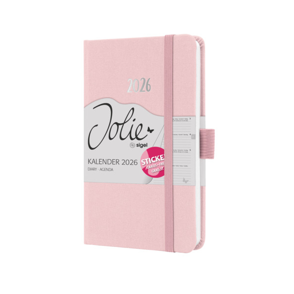 Sigel J6404 Buchkalender. • Grammatur: 80 g/m² • Umschlagfarbe: hellrosa (A6) • Seitenaufteilung: 1 Woche / 2 Seiten