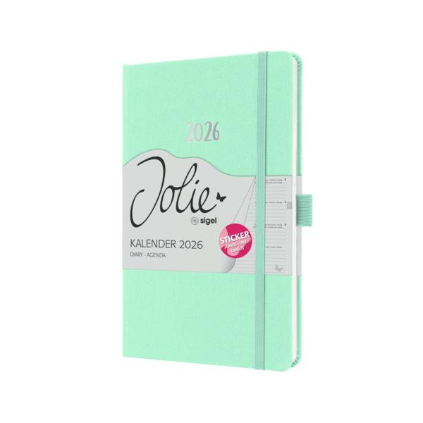 Sigel Buchkalender J6409, mintgrün, 1 Woche / 2 Seiten, 13,5x20,3cm (A5), 2026