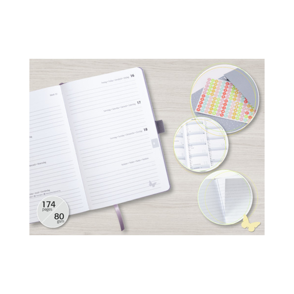 Individualisieren Sie Ihre Planung mit dem beigelegten Stickerbogen und gestalten Sie Ihre Notizen, Skizzen und Entwürfe ganz nach Ihrem Geschmack. Der Buchkalender J6409 ist nicht nur ein praktisches Hilfsmittel, sondern auch das perfekte Geschenk für Kollegen, Freunde und Familie.