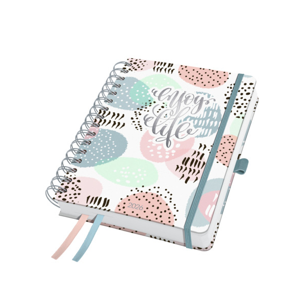 Sigel Buchkalender J6602, rosa, grau, mint, 1 Woche / 2 Seiten, 16,8x21,5cm (A5), 2026