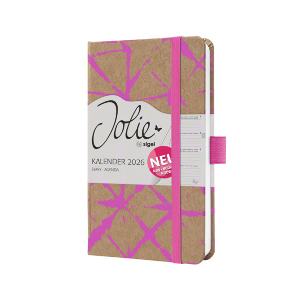Sigel Buchkalender J6800, braun, neon-pink, 1 Woche / 2 Seiten, 9,5x15cm (A6), 2026