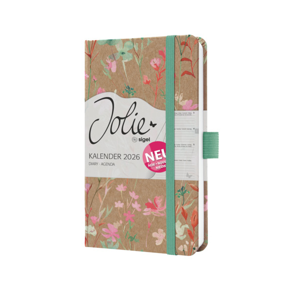 Sigel Buchkalender J6806, braun, grün, rosa, rot, 1 Woche / 2 Seiten, 9,5x15cm (A6), 2026