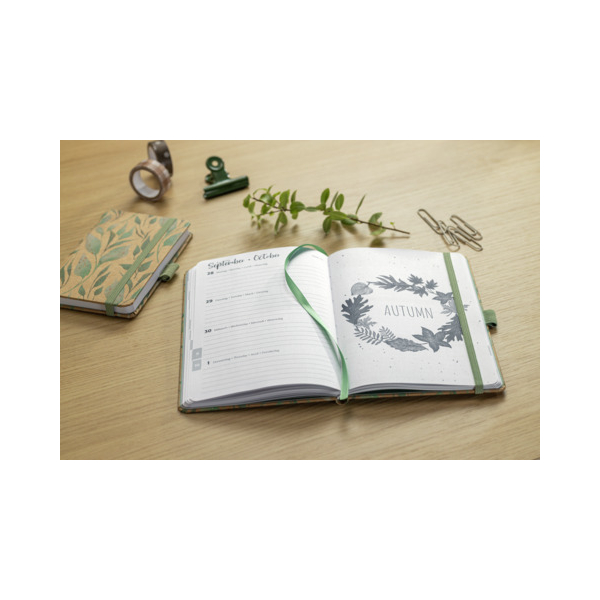 Immer stylisch organisiert - mit dem angesagten Buchkalender "Green Floral Serenity" von Sigel für 2026. Dieser Kalender bietet Ihnen ein praktisches Kalendarium: 2 Seiten = 1 Woche und ist in den Sprachen DE/GB/FR/NL verfügbar. Mit einem handlichen Format von ca. A6 (9,50 x 15 x 1,60 cm) und insgesamt 174 Seiten, darunter 12 perforierte Blätter, ist er der ideale Begleiter für Ihre Planung.