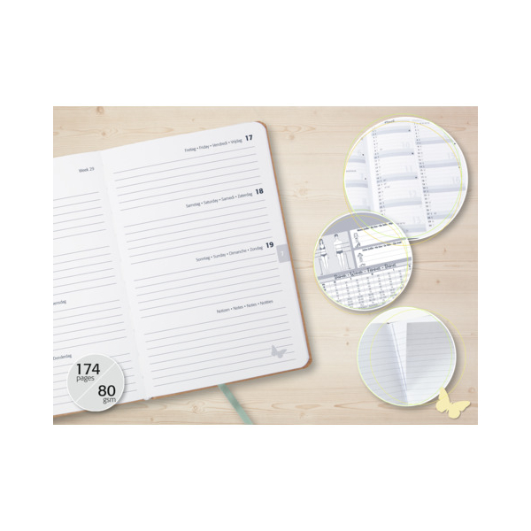 Der stabile Hardcover-Einband in den Farben braun, grün, rosa und rot garantiert Stabilität beim Schreiben. Mit diesem fröhlichen Buchkalender von Jolie haben Sie Ihre Planung im Griff. Termine, Dates, ToDo's - alles ist in diesem Wochenkalender mit nützlichen Features wie einem Gummiband, einer Stiftschlaufe und einem Leseband hübsch untergebracht.