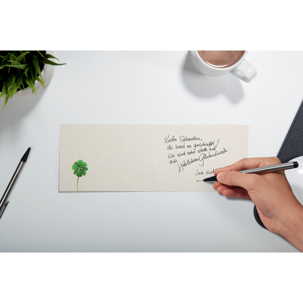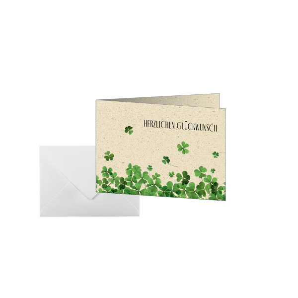 Mit trendigem Motiv und ruck-zuck bedruckt: Glückwunsch-Karten "Luck" (Motiv: Kleeblätter in grün, Druck: beidseitig) im Format A6 (Graspapier, 240 g/m2, 10 Karten). Inkl. 10 passender, gummierter Umschläge. Die SIGEL Design-Karte in hochwertiger Markenqualität ist für viele Anlässe einsetzbar: als Einladung, Menükarte und für jegliche Art von Glückwünschen. Die Motiv-Karte lässt sich ganz einfach mit dem PC gestalten und im offenen Format bedrucken oder per Hand beschriften. Keine Abhängigkeit von Druckereien, geringe Auflagen ganz nach Bedarf Vorgerillt für einfaches Falten. Viele weitere besondere Motive finden Sie exklusiv im SIGEL Sortiment.