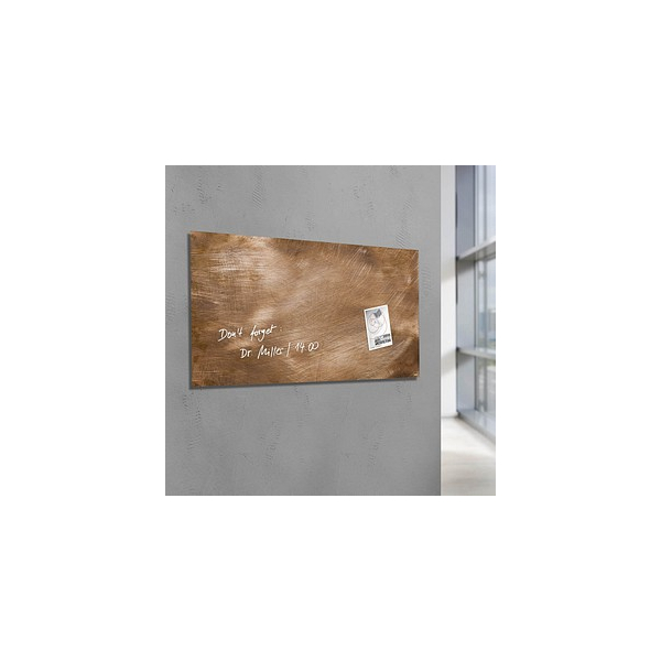Entdecken Sie das exquisite Glas-Magnetboard artverum von Sigel, das nicht nur praktisch, sondern auch ein echter Blickfang ist. Mit einem Format von 91 x 46 cm und einer edlen bronze Farbe fügt es sich harmonisch in jede Umgebung ein und sorgt für eine repräsentative Außenwirkung in Ihrem Büro, Wohnzimmer oder Flur.