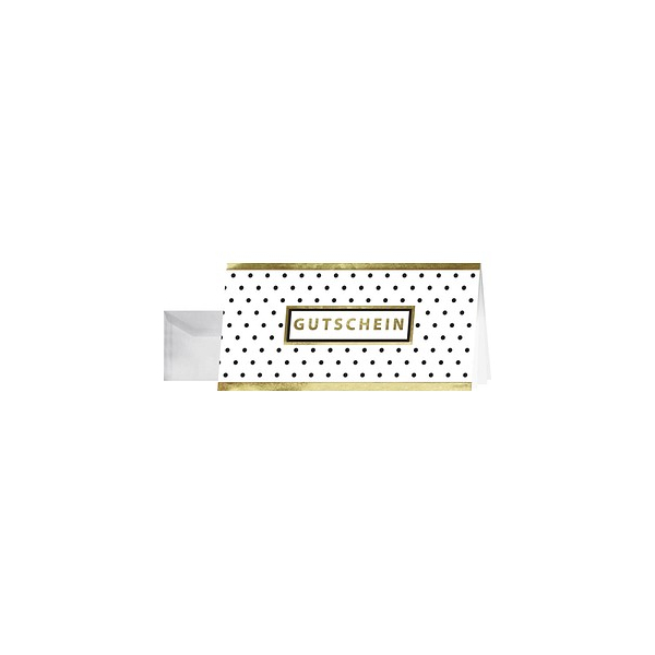 Mit einmaligem Motiv und ruck-zuck bedruckt: die Gutschein-Karten "Golden Glimmer" (Motiv: Punkte in gold, weiß, schwarz) im Format DIN lang (Glanzkarton, 220 g/m², 10 Karten). Hochwertig veredelt: Goldprägung für eine Optik mit dem besonderen Etwas. Inkl. 10 passender, gummierter Umschläge. Die SIGEL Gutschein-Karte in hochwertiger Markenqualität kommt als Geschenk immer gut an. Auch in der Gastronomie oder vielen weiteren Branchen mit Geldwert einsetzbar. Der Gutschein lässt sich ganz einfach mit dem PC gestalten und im offenen Format bedrucken oder per Hand beschriften. Vorgerillt für einfaches Falten. Viele weitere besondere Motive finden Sie exklusiv im SIGEL Sortiment.