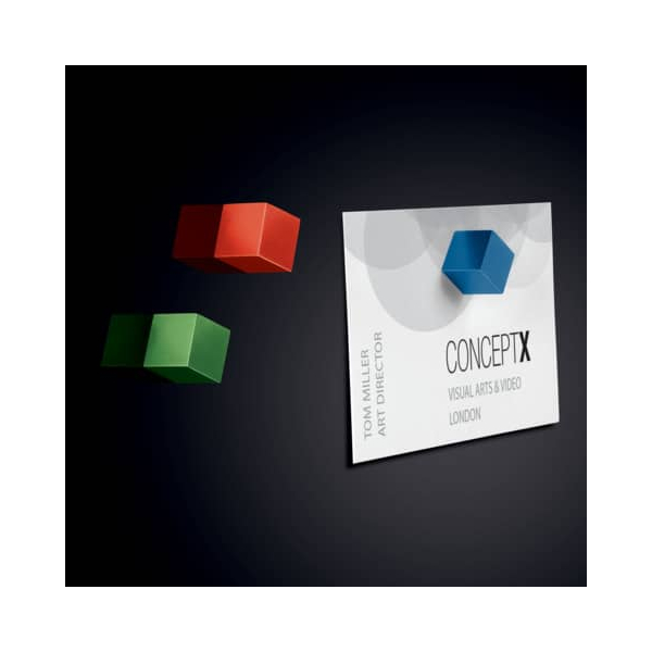 Die drei starken SuperDym-Magnete C5 in den Farben Blau, Rot, Grün halten bis zu 6 Blätter DIN A4 Papier (80 g/m²) auf Glas-Magnetboards (z.B. Artverum Glas-Magnetboards) und bis zu 20 Blätter DIN A4 Papier (80g/m²) auf Metalloberflächen (z.B. Meet up Whiteboards, Mocon Whiteboards). In den hochglänzend polierten Aluminiumgehäusen im Cube-Design sind starke Neodym-Magnete integriert.