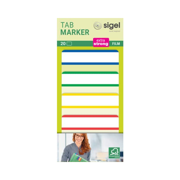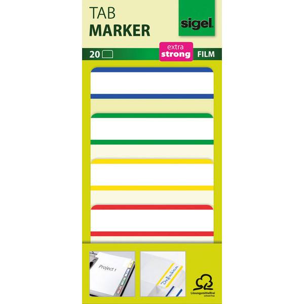 Entdecken Sie die vielseitigen Haftmarker HN202 von Sigel, die in einem praktischen Format von 50x38 mm daherkommen. Diese reißfesten Haftmarker sind aus besonders stabilem Kunststoff gefertigt und bieten ein weißes Schriftfeld mit farbig markiertem Rand in Blau, Grün, Gelb und Rot.