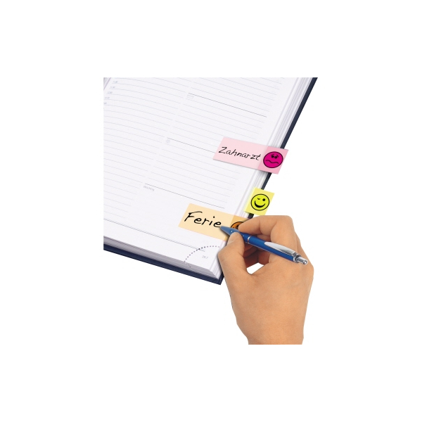 Entdecken Sie die bunten Haftmarker HN502 von Sigel, die ideal für Ihre Organisation und Beschriftung sind. Diese DESIGN-Marker sind aus hochwertigem Papier gefertigt und kommen in den leuchtenden Farben Grün, Gelb, Orange, Blau und Pink. Mit fünf verschiedenen Smiley-Motiven sind sie nicht nur funktional, sondern auch ein echter Hingucker.