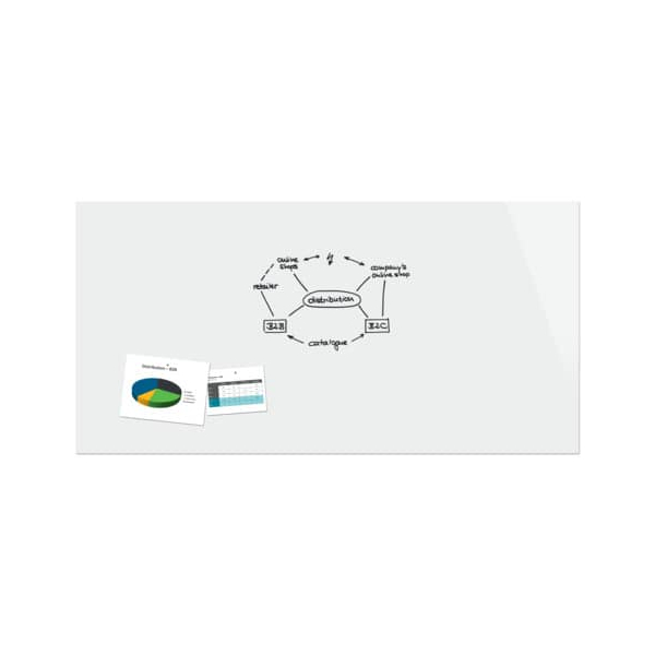 Entdecken Sie die elegante Magnettafel B1700 von Sigel, die mit ihrer großzügigen Größe von 240 x 120 cm und der glänzenden Oberfläche in rein-weiß jedem Raum einen modernen Akzent verleiht. Diese Glas-Magnettafel ist nicht nur ästhetisch ansprechend, sondern auch äußerst funktional. Sie ist magnethaftend und lässt sich sowohl mit Glastafel-Markern als auch mit allen handelsüblichen Board- und Kreidemarkern beschreiben. Notizen und Informationen können somit problemlos festgehalten und bei Bedarf mühelos entfernt werden.