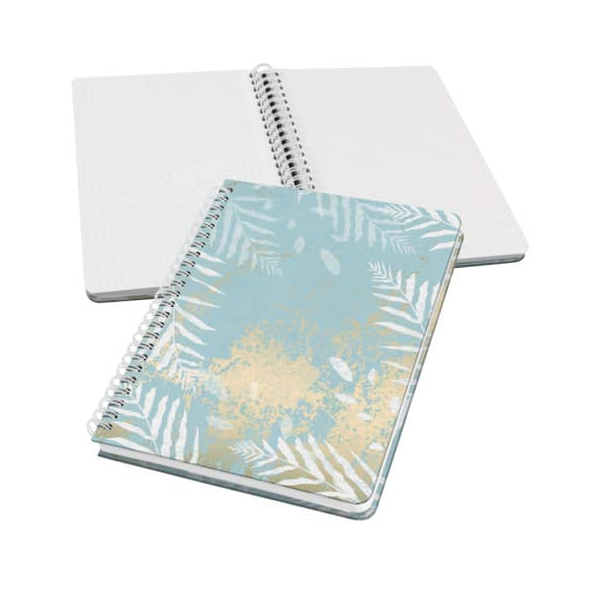 Werden Sie Handlettering-Profi - mit dem schönen Notizbuch JN614, mit Spirale Jolie im Format ca. A5 (16,2 x 21,5 cm) mit 120 Seiten (punktkariert, Dot-Lineatur, 120 g/m², alle Blätter perforiert). Der stabile Hardcover-Einband in hellblau, weiß und gold garantiert Stabilität beim Schreiben und Zeichnen. Lassen Sie Ihrer Kreativität freien Lauf. Mit dem extrastarken weißen Papier ist das Jolie Spiral-Notizbuch ideal für die Kreativtrends Handlettering und Bullet Journaling geeignet, um es mit kunstvollen Buchstaben und Zeichnungen zu gestalten. Daheim auf der Couch, in der Mittagspause oder im Zug auf dem Weg zur Arbeit: Das stabile Hardcover-Notizbuch mit hochwertiger Metallic-Ringbindung einfach komplett umschlagen und loslegen.