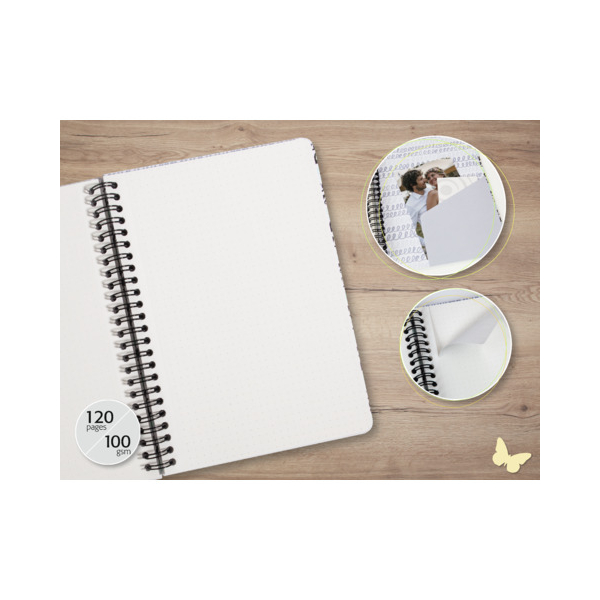 Das Notizbuch im Format A5 (ca. 16,20 x 21,50 x 1,80 cm) bietet Ihnen mit 120 Seiten eine ideale Grundlage, um Ihre Gedanken, Skizzen und kreativen Ideen festzuhalten. Hergestellt aus extrastarkem, weißem Papier mit einer Grammatur von 100 g/m², eignet es sich perfekt für Handlettering und Bullet Journaling.