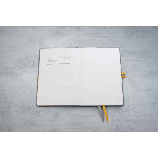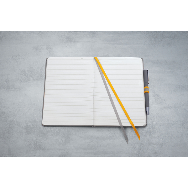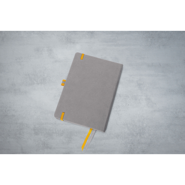 Notizbuch mit Hardcover in hellgrau, gelb, Format ca. A5 (14,8 x 21,3 cm), liniert, mit 176 Seiten. Sie suchen ein Notizbuch, das nicht nur im modernen Business Umfeld, sondern auch im privaten Bereich Einsatz findet? Dann kommen Sie an diesem Notizbuch der Serie Linescape von SIGEL nicht vorbei. Die Bücher gibt es auch in anderen Farbkombinationen, aber immer mit trendigem Senfgelb - für selbstbewusste Individualisten. Das Cover aus weichem PU kommt dabei dezent, allerdings besticht die Akzentfarbe Gelb bei den Features: Gummiband, Zeichenbänder, die 2-farbige Stiftschlaufe und die Vorsatzseiten greifen den Gelbton wieder auf. Die 176 Seiten bieten jede Menge Platz zum Schreiben und sind FSC-zertifiziert. Das komplette Buch ist vegan.