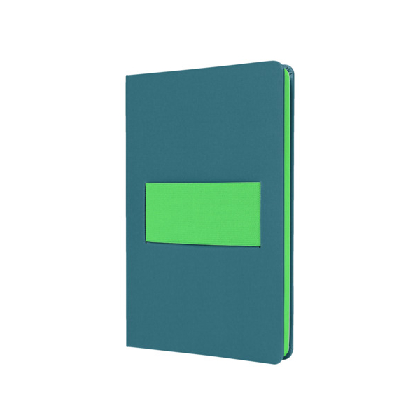 Das Hardcover aus farbig bedrucktem Strukturpapier sorgt für eine robuste Hülle, die Ihre Notizen sicher schützt. Ein breites Gummiband hält Ihre wichtigen Kleinutensilien wie Stifte, Handy und Taschenrechner stets griffbereit. Besonders auffällig ist der farblich abgestimmte Buchschnitt, der das Gesamtbild harmonisch abrundet.