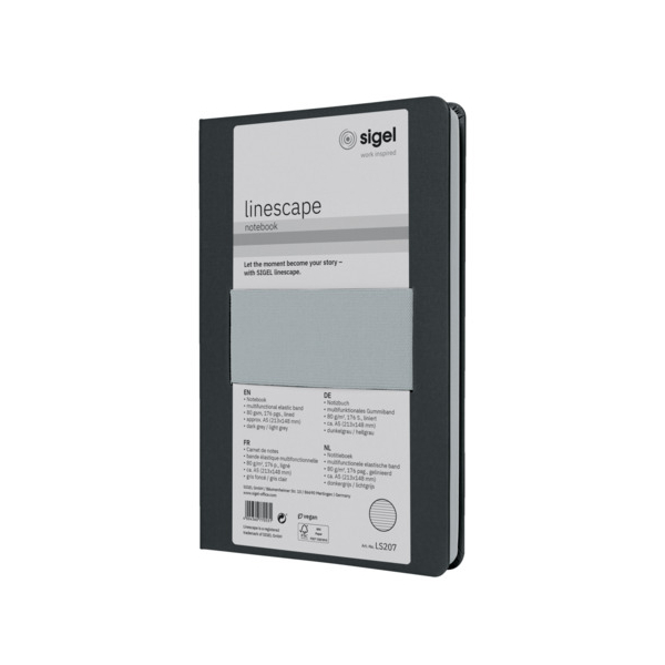 Sigel Notizbuch LS207, Linescape, schwarz, A5, liniert, 80g, 88 Blatt / 176 Seiten