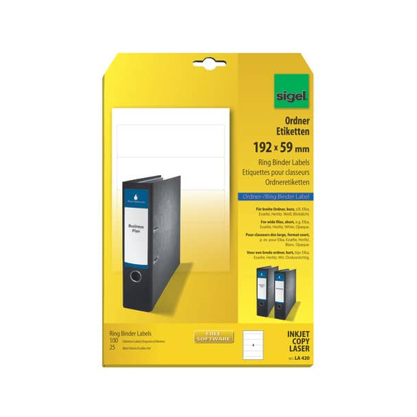 Sigel Rückenschilder LA420, weiß, breit/kurz, 59x192mm, selbstklebend