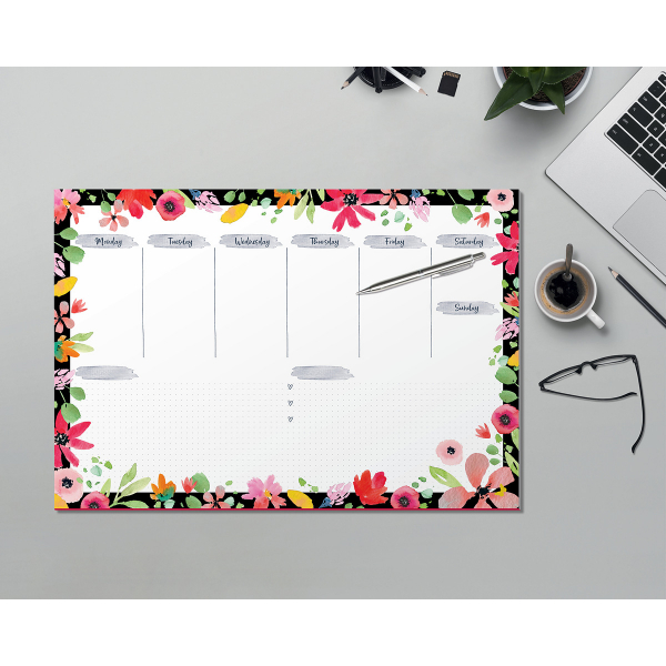 Qualität made in Germany - die Papier-Schreibunterlage Flower Love umfasst 30 Blatt im Format A3 (42 x 29,7 cm). Das hochwertige Papier lässt sich angenehm beschreiben und ist für alle Maustypen geeignet. Selbstverständlich bietet die Schreibunterlage jede Menge Platz für Ihre Notizen, Ideen, Termine und Aufgaben und lässt sich wie einen Abreißblock nutzen. Der stabile, rutschfeste Rückenkarton und die spezielle Leimung an Ober- und Unterkante lässt die Unterlage plan aufliegen und verhindert Eselsohren. An den schönen und hochwertigen SIGEL Papier-Schreibunterlagen haben Sie lange Freude.