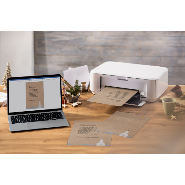 Das Papier ist bedruckbar mit Kopierer, Laser und InkJet und kann beidseitig bedruckt werden. Das Motiv zeigt einen niedlichen Eisbären mit einem Sternschnuppenregen und verleiht Ihren Weihnachtsbotschaften eine besondere Note.