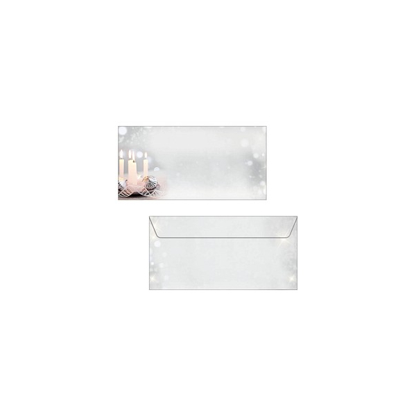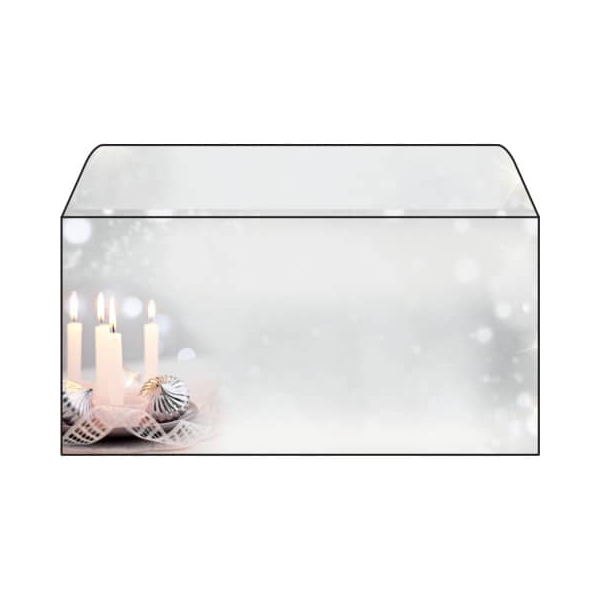 Stilvolle Weihnachtsumschläge "Christmas Silence" (Motiv: Kerzen in silber, grau) im Format DIN lang, 50 Stück mit gummierter Klappe. Überraschen Sie Geschäftspartner, Mitarbeiter, Kollegen oder auch Freunde und Familie mit exklusiven Grüßen zur Weihnachtszeit. Individuell und unkompliziert bedruckbar - für Ihre persönliche und einzigartige Weihnachtspost im Handumdrehen. Keine Abhängigkeit von Druckereien, geringe Auflagen ganz nach Bedarf - und das in Premiumqualität.