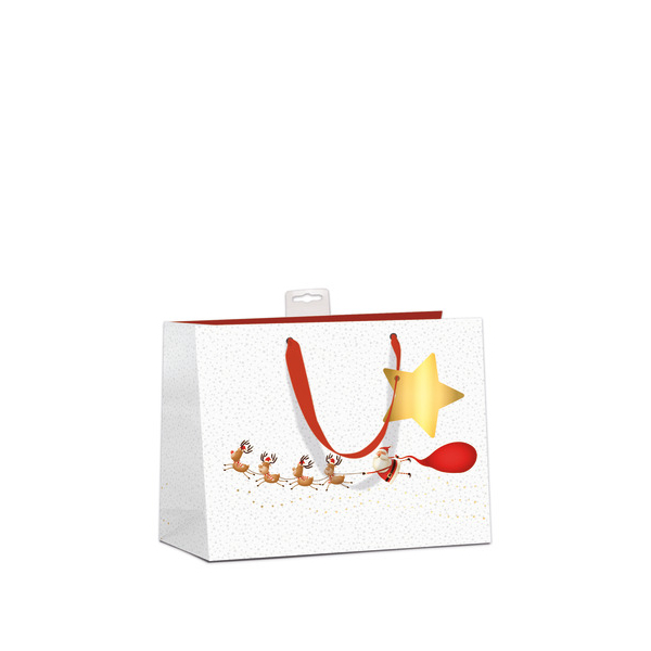 Entdecken Sie die festliche Geschenktasche 7522-2506-Q von SKORPION, die ideal für all Ihre Weihnachtsgeschenke geeignet ist! Diese Weihnachts-Geschenktragetasche im attraktiven Design eines Schlittens misst 26 x 32 x 12 cm (ca. A4, quer) und besteht aus robustem Naturkarton mit einer Papiergrammatur von 200 g/m².