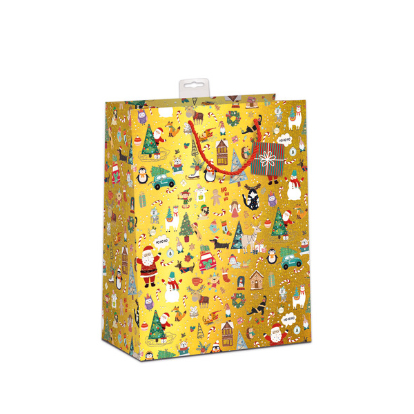 Entdecken Sie die zauberhafte Geschenktasche 7522-2511-J von SKORPION, ideal für kleine Geschenkideen und festliche Anlässe! Diese Weihnachts-Geschenktragetasche für Kinder hat die großzügigen Maße von 450 mm x 330 mm x 120 mm (Jumbo) und besteht aus hochwertigem, gold mattem Papier mit einer Grammatur von 210 g/m².