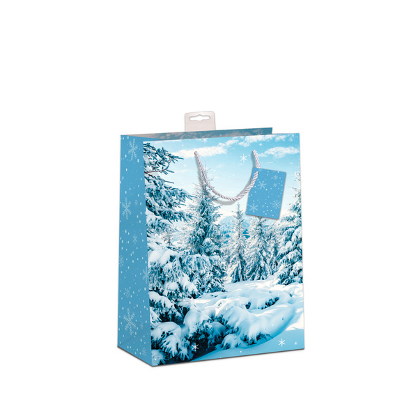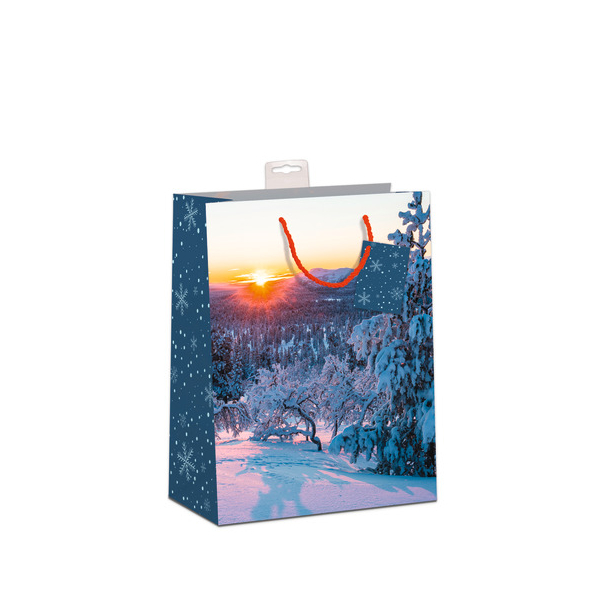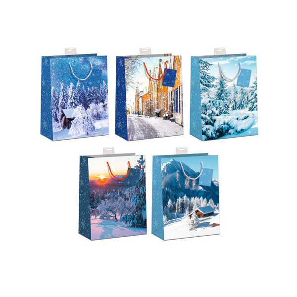 Die Tasche ist mit Dispersionslack und hochwertiger Folienkaschierung veredelt, was ihr ein elegantes Finish verleiht. Sie erhalten die Tasche in fünf winterlichen Landschaftsmotiven, die eine stimmungsvolle Atmosphäre schaffen. Ausgestattet mit einer farbigen Kordel, einer Namenskarte und einer praktischen Eurolochvorrichtung, ist sie ideal für die festliche Geschenkverpackung.