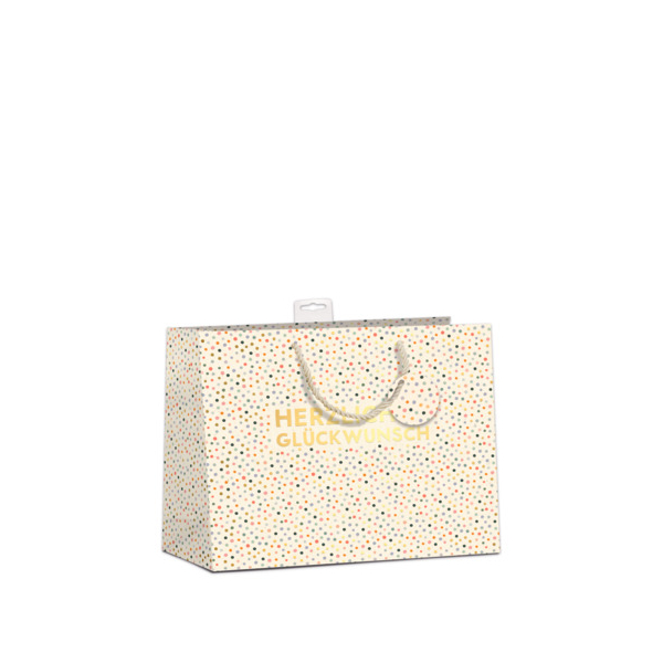 | mit Goldfolie veredelt, mit Baumwollkordel, Anhänger und Eurolochvorrichtung. | |