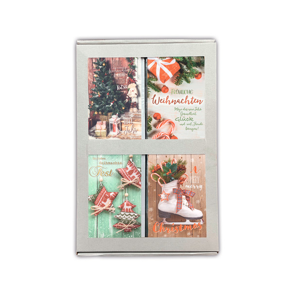 Entdecken Sie die festliche Vielfalt unserer Weihnachtskarten von SKORPION! Die Weihnachtskarte kommt in einer sortierten Auswahl von 8 verschiedenen Motiven, die mit Dispersionslack veredelt sind. Die Karten haben die Maße 11,5 x 17,5 cm und bieten durch den Dispersionslack einen glänzenden, schützenden Effekt, der die festlichen Motive besonders hervorhebt. Perfekt, um weihnachtliche Grüße stilvoll zu übermitteln.