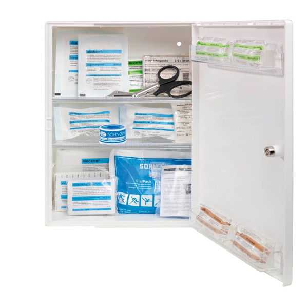 Söhngen Erste-Hilfe-Schrank Berlin weiß gefüllt DIN 13157