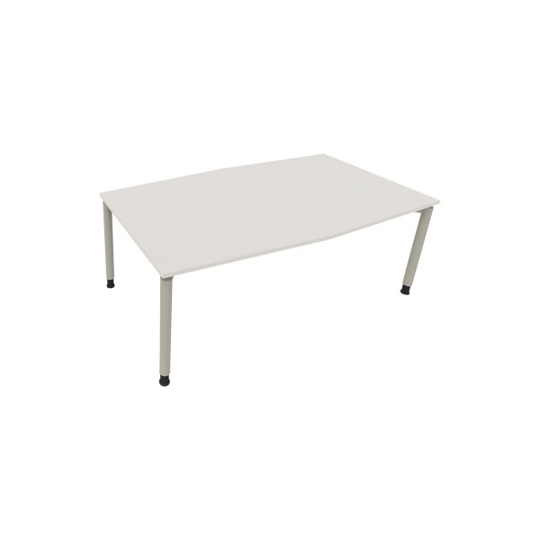 Soennecken Besprechungstisch communication, höhenverstellbar 68-82cm (H), 200x100/110cm (BxT), Tonnenform, weiß / silber