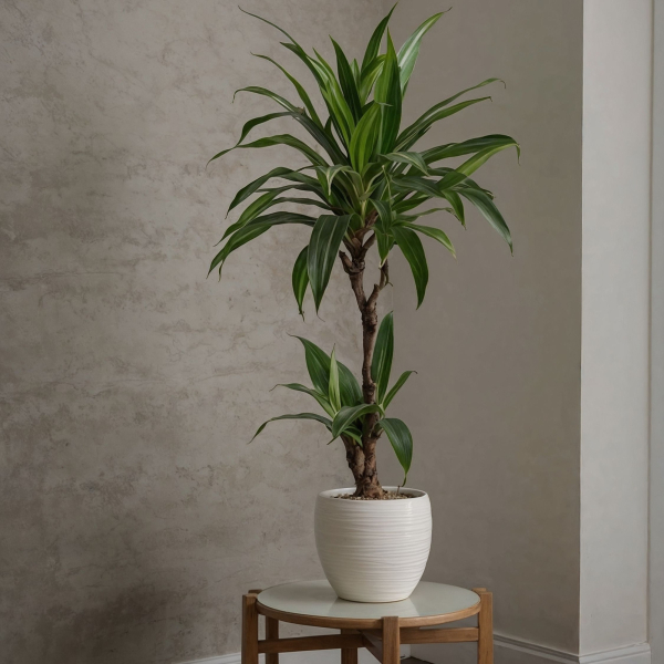 Tropischer Look, pflegeleicht und luftreinigend. Die Dracaena Janet Craig hat alles! Diese erstaunliche Zimmerpflanze stammt aus Afrika, Mittelamerika und Asien. Das Klima in diesen Gegenden ist für Pflanzen ziemlich rau, aber das bedeutet, dass die Dracaena einiges aushalten kann und daher pflegeleicht ist. Diese Pflanze ist wegen des roten Harzes, das aus der Pflanze fließt, wenn ein Schnitt in den Stängel oder die Blätter gemacht wird, auch als Drachenblutbaum bekannt. Diese Zimmerpflanze filtert verschmutzte Partikel aus der Luft und schafft eine gesündere Umgebung. Die Dracaena erfordert wenig Pflege. Es ist die ideale Pflanze für Ihr Zuhause oder Büro. Am besten gedeiht die Dracaena an einem Standort im (Halb-)Schatten. Außerdem benötigt diese Pflanze nicht viel Wasser. Gießen Sie die Pflanze nur, wenn sich die Erde trocken anfühlt. Zu viel Wasser kann Wurzelfäule verursachen. Dies erkennt man an den Blättern: Hier bilden sich braune Flecken mit gelben Rändern. In diesem Fall wird empfohlen, weniger Wasser zu geben und die braunen Blätter zu entfernen. Wenn die Pflanze über einen längeren Zeitraum nass ist, können die Wurzeln verfaulen und es ist dann schwierig, die Pflanze zu retten. Im Winter benötigt die Pflanze noch weniger Wasser als im Sommer. Im Zweifelsfall lieber etwas zu wenig als zu viel gießen. Ein Rückschnitt ist nicht notwendig, kann aber im Herbst durchgeführt werden, um die Pflanze kompakt zu halten.