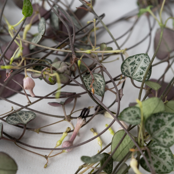 Die Ceropegia Woodii fühlt sich an einem Standort mit viel Tageslicht am wohlsten, kann jedoch auch in dunkleren Ecken gedeihen. Zudem ist die Pflanze ungiftig, was sie zu einer sicheren Wahl für Haushalte mit Kindern oder Haustieren macht. Es ist bemerkenswert, dass die kleinen Stränge dieser Pflanze über einen Meter lang werden können!
