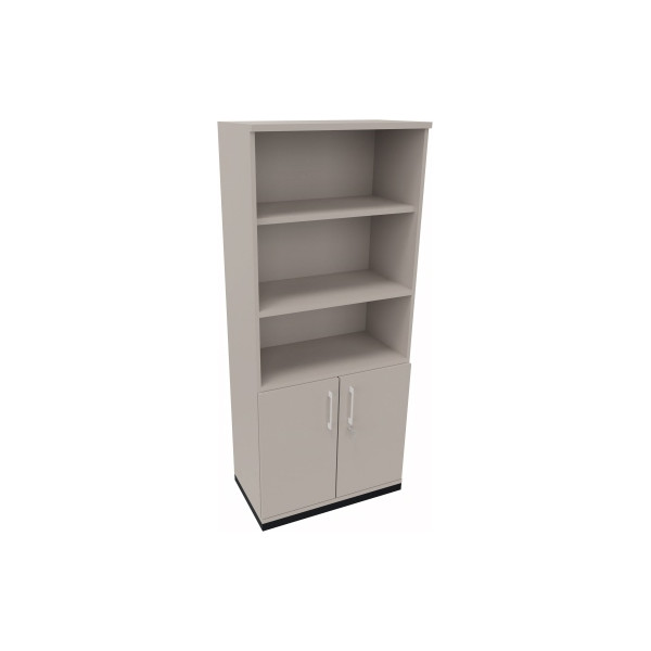 2 Fachböden Regalteil, 1 Fachboden Schrankteil mit 2 Flügeltüren abschließbar, Bügelgriff, mit 45mm Sockel silberaluminium