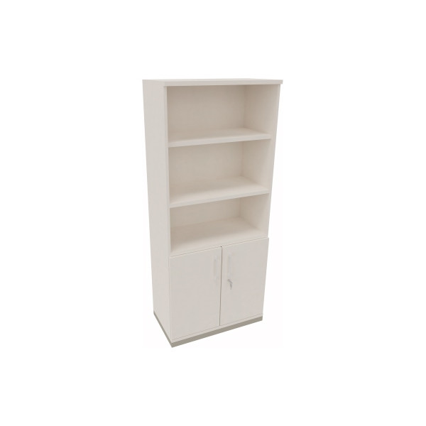 • Ausführung: 2 Fachböden Regalteil, 1 Fachboden Schrankteil mit 2 Flügeltüren abschließbar, Bügelgriff, mit 45 mm Sockel silberaluminium