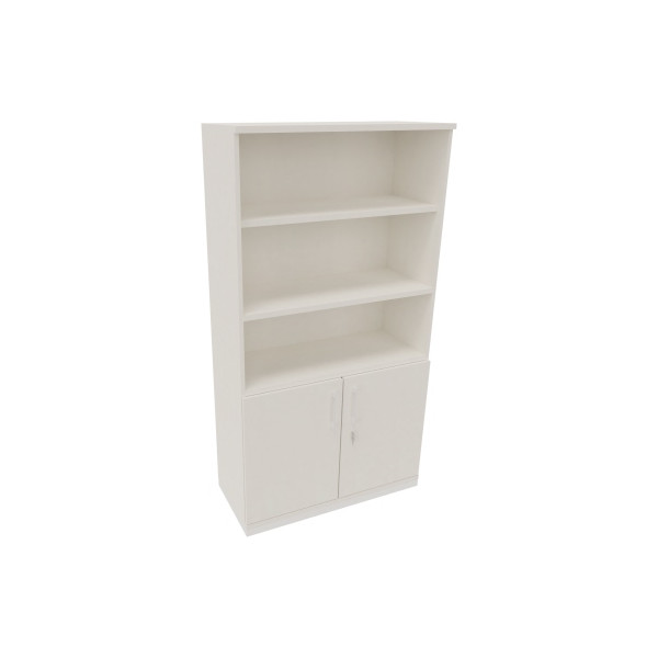 2 Fachböden Regalteil, 1 Fachboden Schrankteil mit 2 Flügeltüren abschließbar, Bügelgriff, mit 45mm Sockel verkehrsweiß