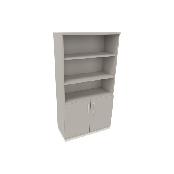 2 Fachböden Regalteil, 1 Fachboden Schrankteil mit 2 Flügeltüren abschließbar, Bügelgriff, mit 45mm Sockel silberaluminium