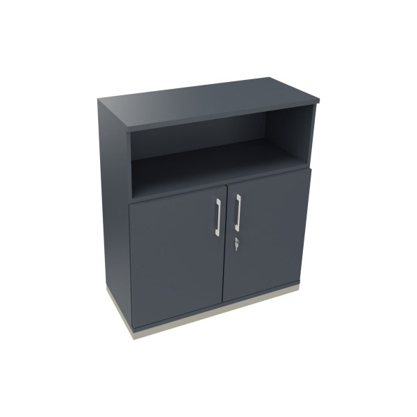 1 Regalteil (1OH), 1 Fachboden Schrankteil mit 2 Flügeltüren abschließbar, Bügelgriff, mit 45mm Sockel anthrazit metallic