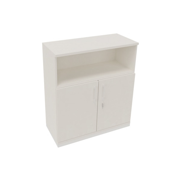1 Regalteil (1OH), 1 Fachboden Schrankteil mit 2 Flügeltüren abschließbar, Bügelgriff, mit 45mm Sockel verkehrsweiß
