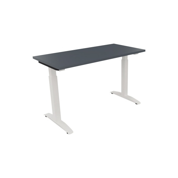 Soennecken Schreibtisch All in One, manuell höhenverstellbar, 65-85cm (H), 120x60cm (BxT), rechteckig, lavagrau / weiß