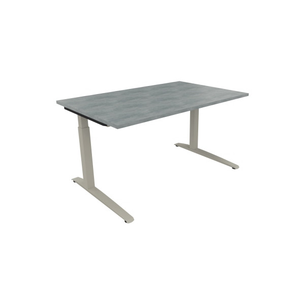 Soennecken Schreibtisch All in One, manuell höhenverstellbar, 65-85cm (H), 140x90cm (BxT), rechteckig, beton hell / silberaluminium