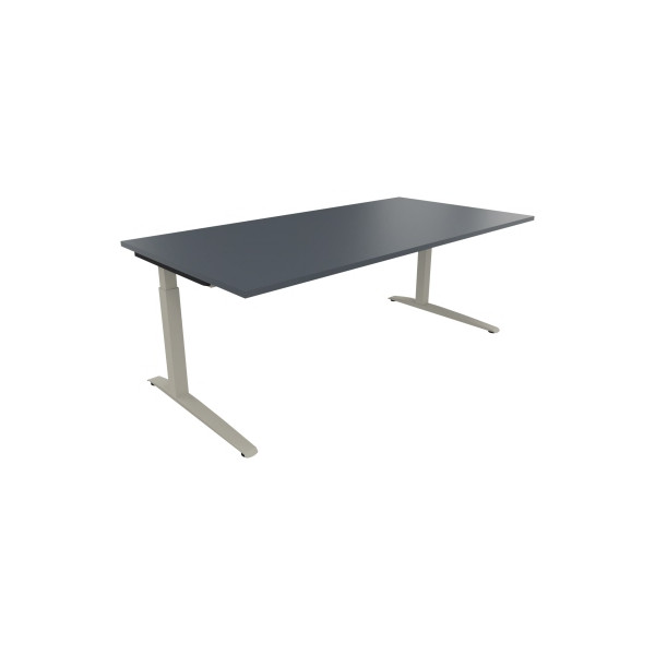 Soennecken Schreibtisch All in One, manuell höhenverstellbar, 65-85cm (H), 200x100cm (BxT), rechteckig, lavagrau / silberaluminium