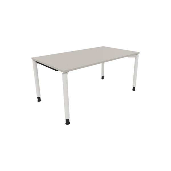 manuell höhenverstellbarer Schreibtisch Soennecken All in One 810040281 • Höhe: 68-82cm • Platte: lichtgrau, 160x90cm (BxT), rechteckig, verkettbar, Holz, 25mm • Gestell: weiß, 4-Fuß-Rundrohr-Gestell Rundrohr, Metall • ohne Rollen • Tragfähigkeit: bis 100kg • Anlieferung: komplett montiert