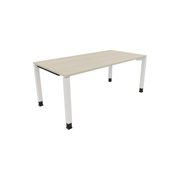 Dieser rechteckige Schreibtisch ist aus hellen Akazienholz gefertigt und kombiniert Eleganz mit Funktionalität. Das Gestell in verkehrsweißem Metall verleiht dem Tisch eine stabile Grundlage und sorgt gleichzeitig für eine ansprechende Optik in Ihrem Arbeitsbereich.