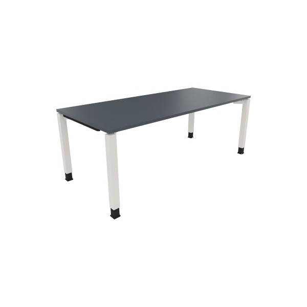 manuell höhenverstellbarer Schreibtisch Soennecken All in One 810035782 • Höhe: 68-82cm • Platte: lavagrau, 200x90cm (BxT), rechteckig, verkettbar, Holz, 25mm • Gestell: weiß, 4-Fuß-Quadratrohr-Gestell Quadratrohr, Metall • ohne Rollen • Tragfähigkeit: bis 100kg • Anlieferung: komplett montiert