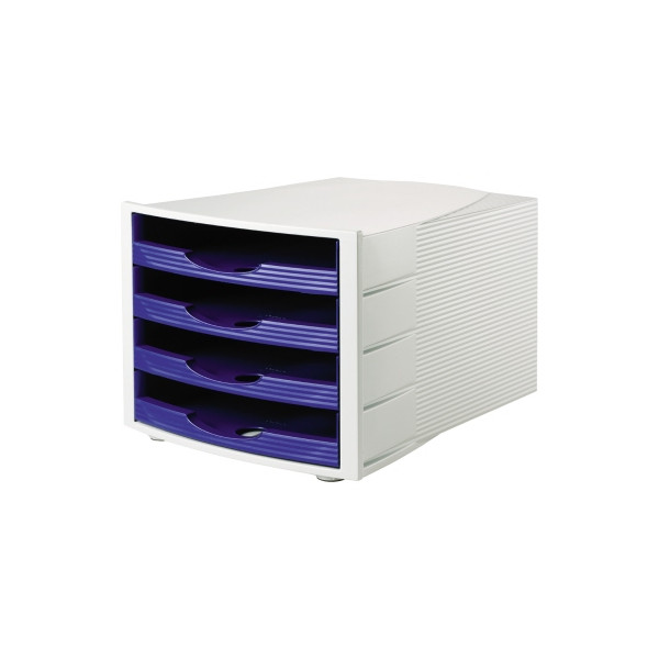Jetzt Soennecken Schubladenbox 1550 lichtgrau/blau 4 Schubladen offen günstig kaufen.