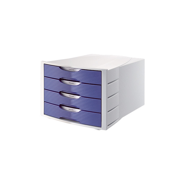Soennecken Schubladenbox 1553 lichtgrau/blau 4 Schubladen geschlossen