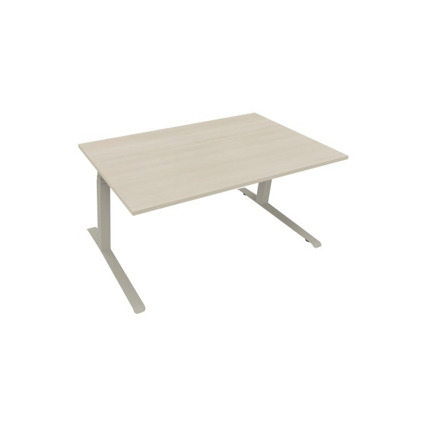 elektrisch höhenverstellbarer Sitz-Steh-Schreibtisch Soennecken All in One 810044672 • für ergonomisches Arbeiten • Höhe: 64,5-127,5cm • Platte: akazie hell, 160x90cm (BxT), rechteckig, verkettbar, Holz, 25mm • Gestell: silberaluminium, C-Fuß-Gestell, Flachkufe Quadratrohr Quadratrohr, Metall • ohne Rollen • Tragfähigkeit: bis 100kg • Anlieferung: komplett montiert